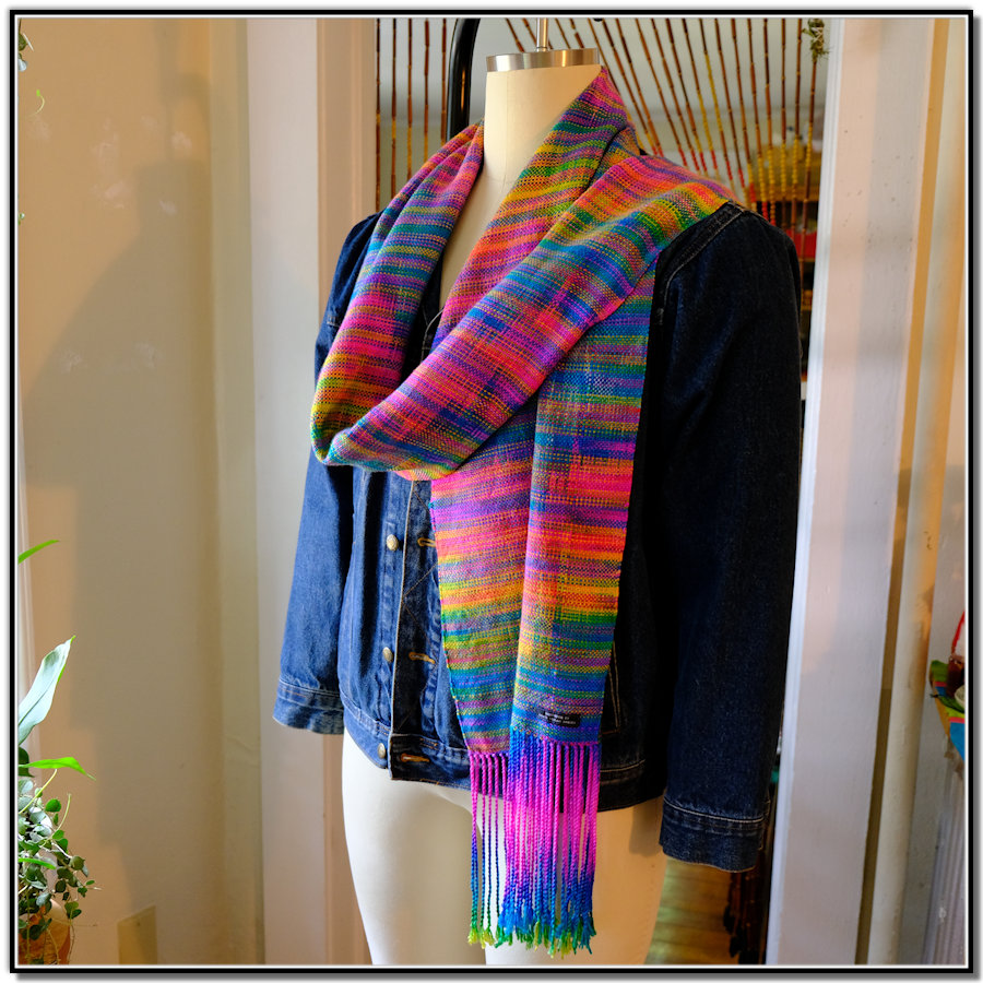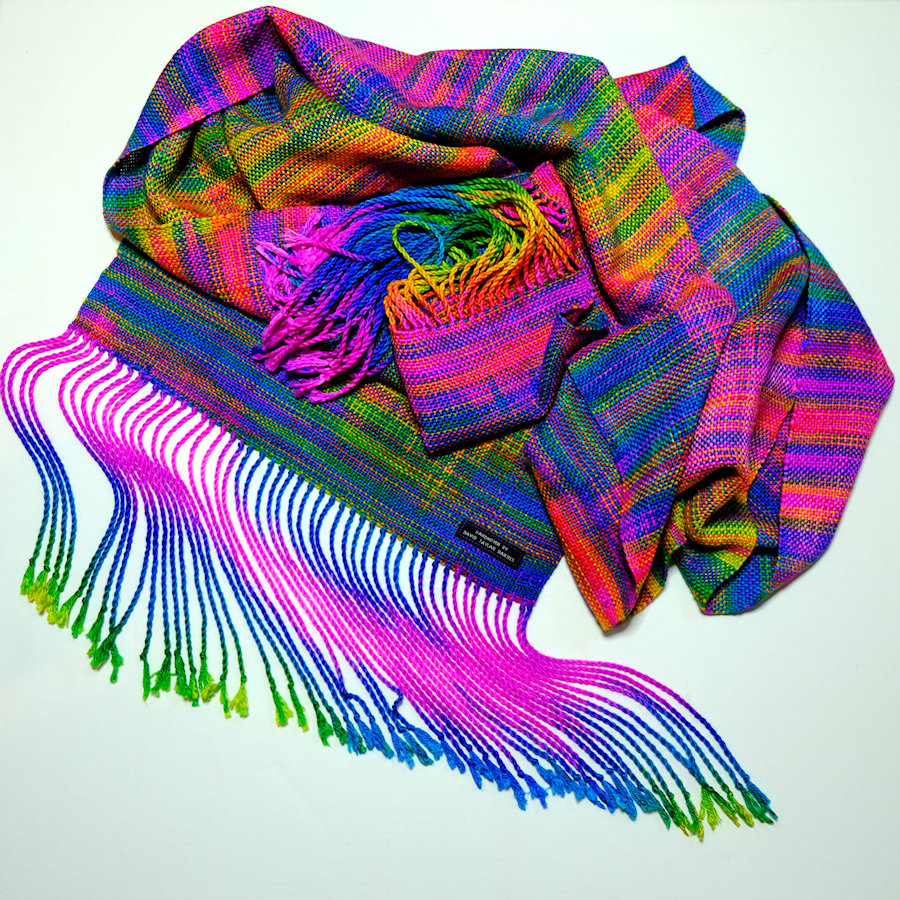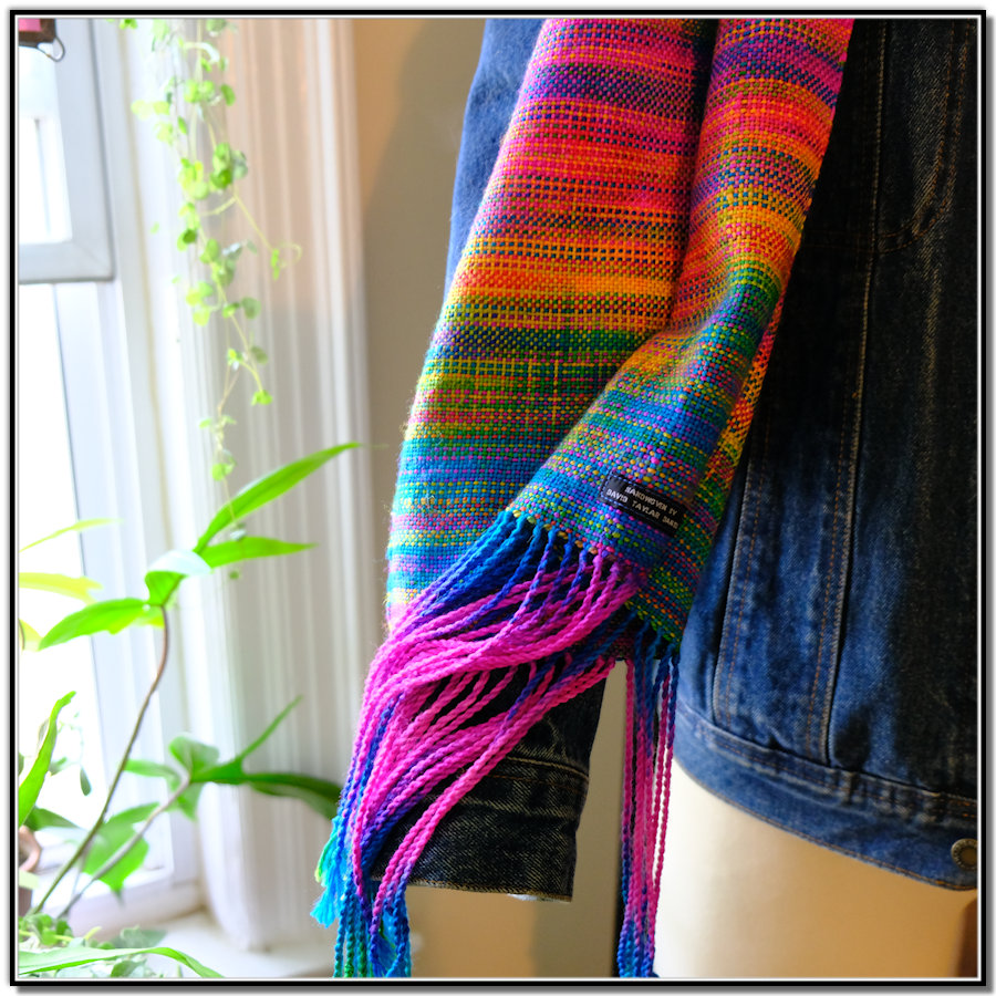 13.25″W x 80″L, 9″ hand-twisted fringe, 98″ total